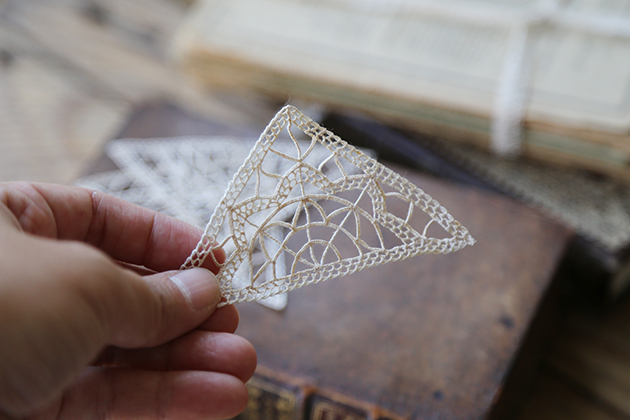 此系列蕾絲裝飾片,綁上繩子作為吊飾,也很有一番風味