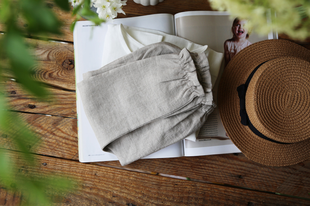 亞麻褲可搭配亞麻衫或洋裝,小男孩也可以穿搭呦