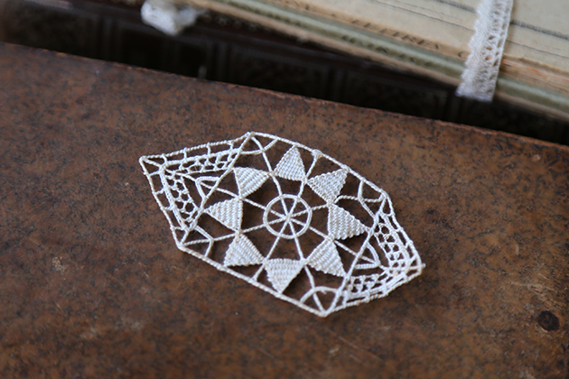 這些古董蕾絲裝飾片、蕾絲緞帶與精緻的領片