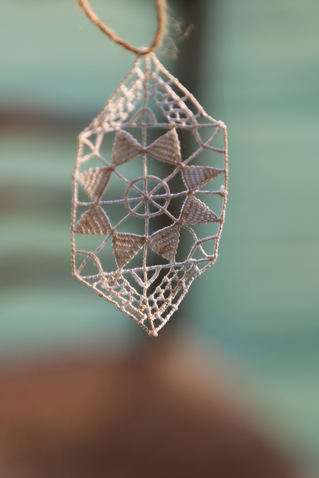此系列蕾絲裝飾片,綁上繩子作為吊飾,也很有一番風味