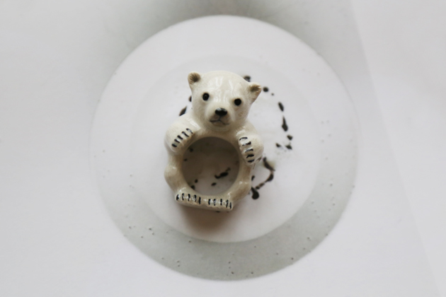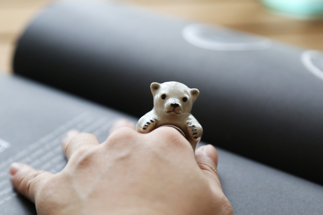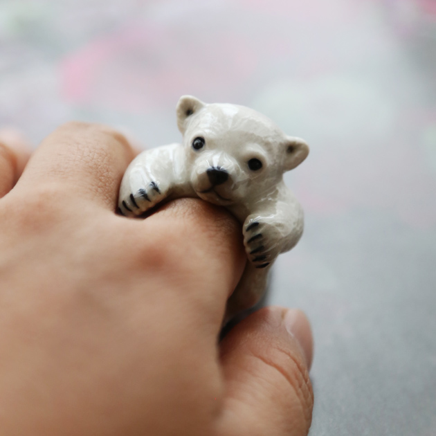 其中最著名的就為手繪陶瓷珠寶飾品,動物們帶著純真又無邪的表情,不時會穿插穿著洋裝的貓咪、穿著西裝的哈巴狗,