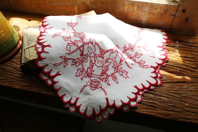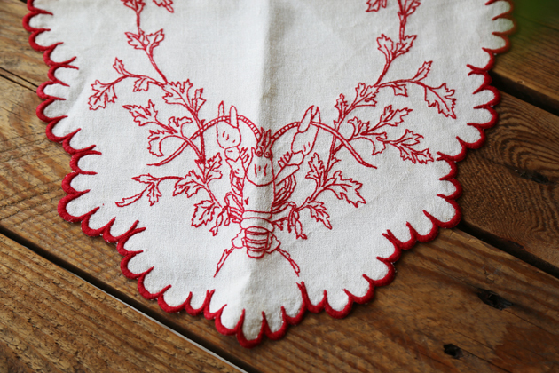 品名:古董刺繡橢圓襯墊-龍蝦