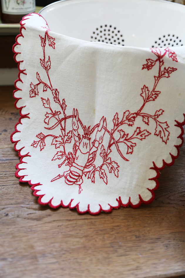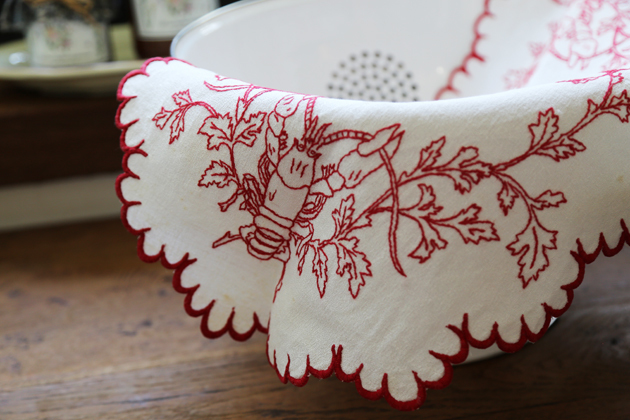 此款古董襯墊以龍蝦為主題