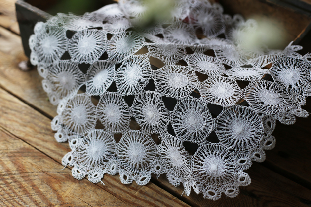 *若髒了可使用清潔用蘇打粉,將蘇打粉溶解於溫水,再將蕾絲巾浸泡半小時搓洗