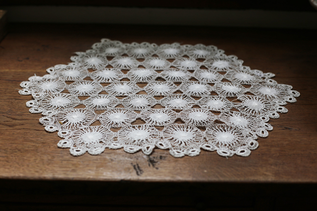 在歐洲進行清理、修補,在使用漿化處理,讓每件蕾絲都能夠有好的收藏狀態