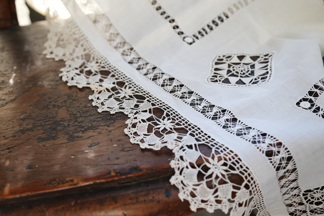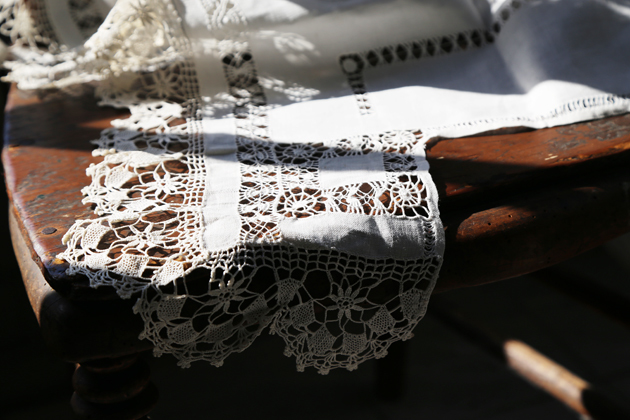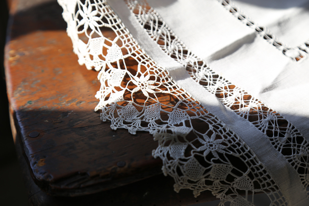 運用數十個木製線軸,反覆交錯編織,織出擁有精美花樣蕾絲枕巾或貼身襯褲,並做為傳承給未來女兒的傳家嫁妝