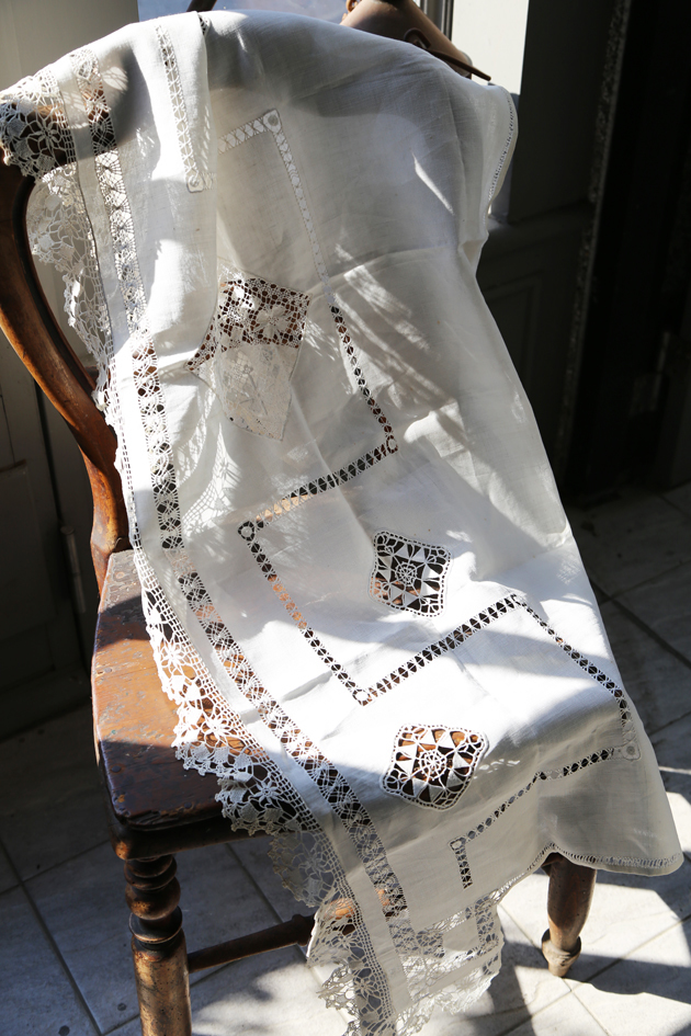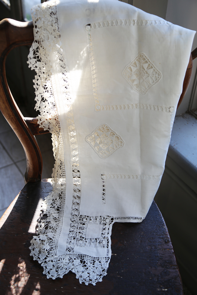 此件亞麻巾在歐洲有漿過處理,收藏保存狀況良好