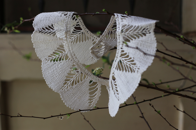 運用數十個木製線軸,反覆交錯編織,織出擁有精美花樣蕾絲枕巾或貼身襯褲,並做為傳承給未來女兒的傳家嫁妝