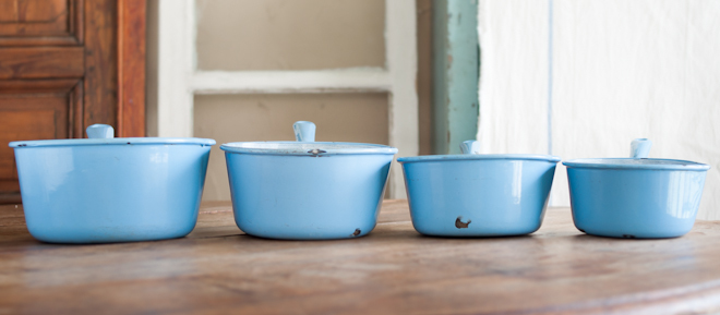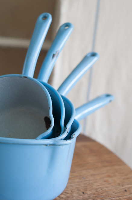 天藍色唐瓷琺琅牛奶鍋一套共有4個,由大至小