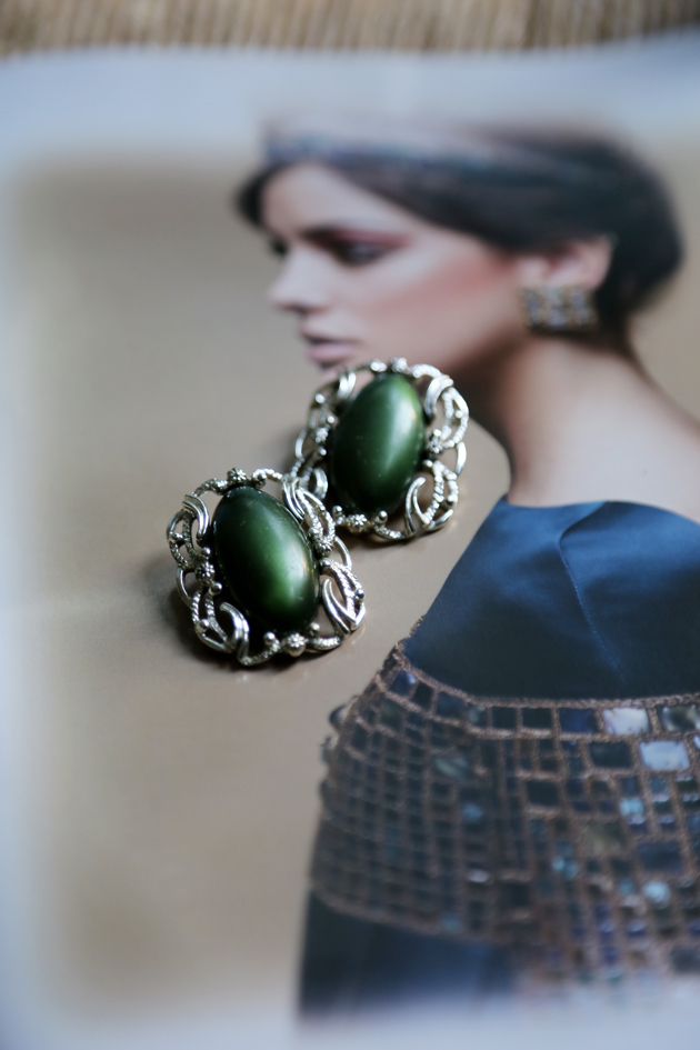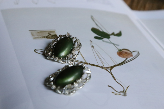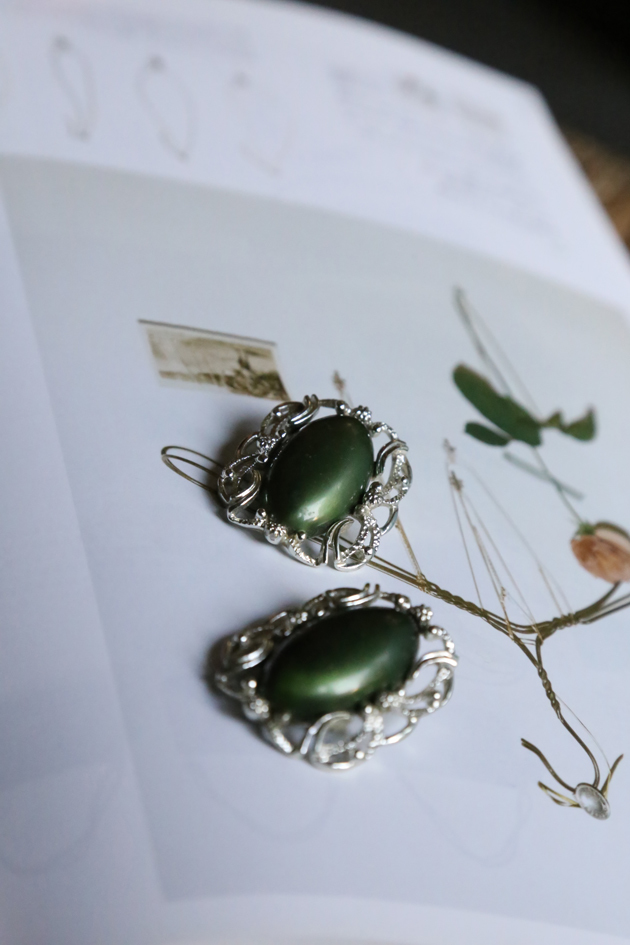 材質:鍍銀+ 復古仿寶石樹脂
