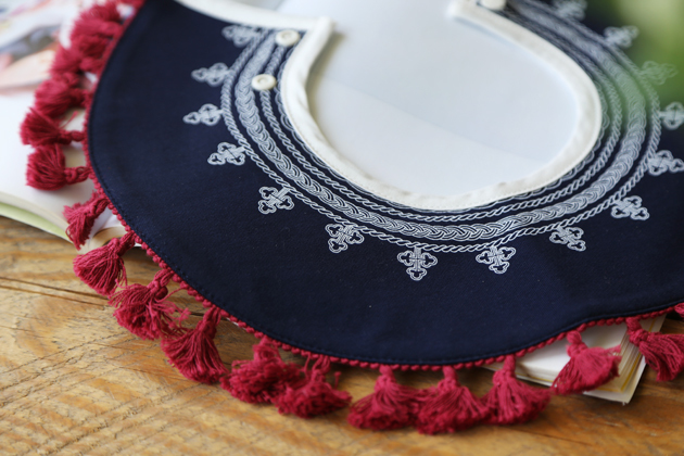 我們彼此聊著對該品牌的喜愛,交流中感受到MarlMarl對材質的考量、每款圍兜的設計