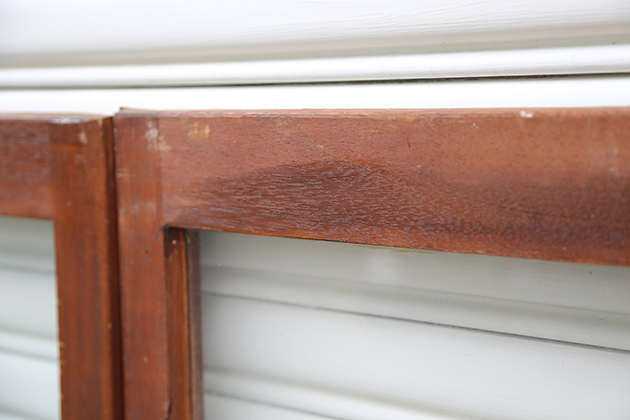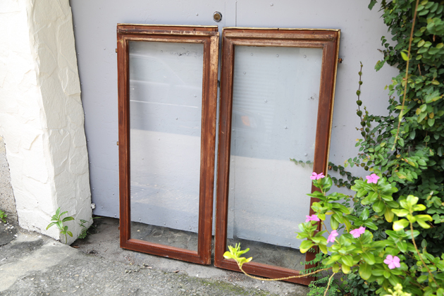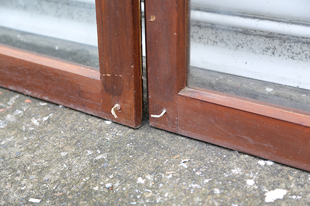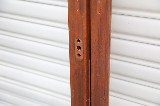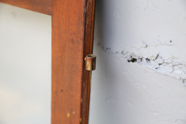 窗框五金拆下來剩下圓洞與釘孔 是使用的痕跡