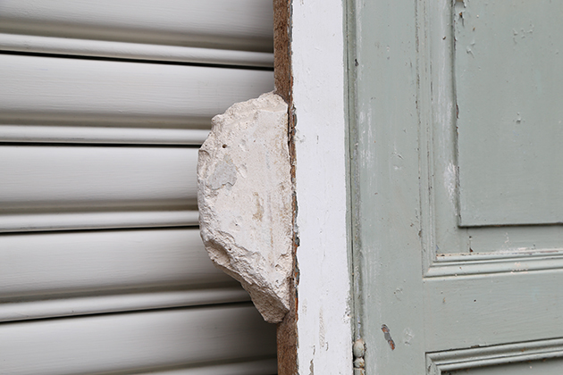 門框保留下的石塊 像是不想分開的老朋友