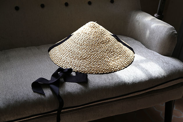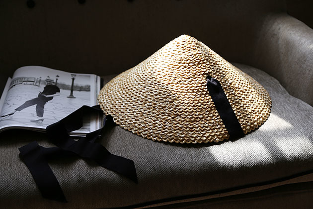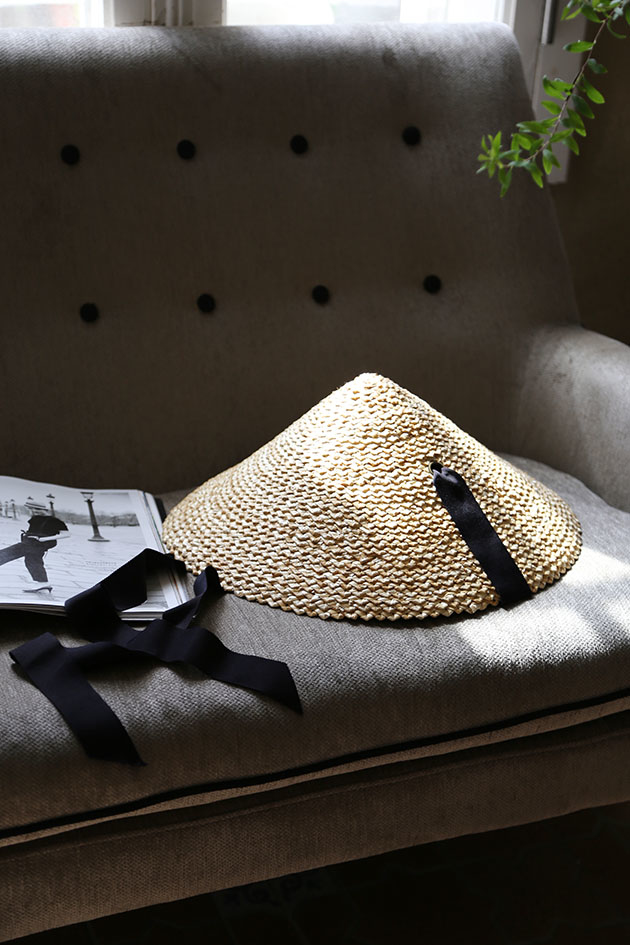 黑緞帶錐形草帽,帶點東方風情的韻味